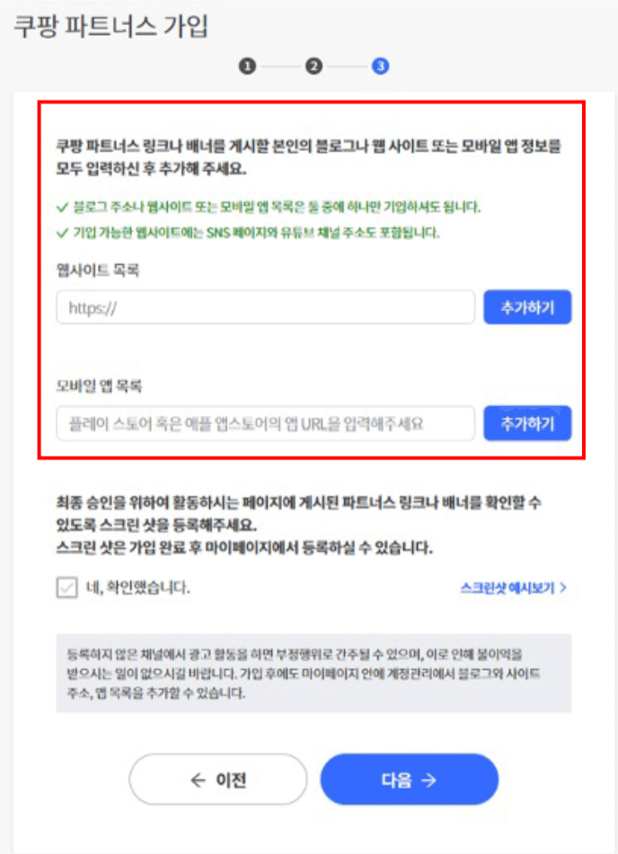 쿠팡 파트너스는 3단계의 승인과정을 통해 승인이 납니다.